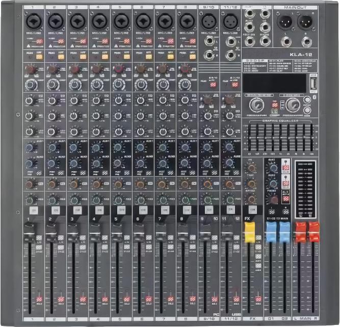 功能特点:1.8路平衡式单声道话筒输入,4路立体声输入2.提供优质的+48V幻象电源3.每通道3段均衡器,打造温暖音色4.带有辅助发送、辅助返回、监听、录音功能5主控2×7段均衡6.采用16种数字显示数码效果器,包括混响,合唱,延迟,变调,多重效果,节拍功能7.带SD卡插口、MP3大显示播放器8.所有通道都有峰值信号指示和推子前监听选择并带录音功能9.内置保护功能齐全